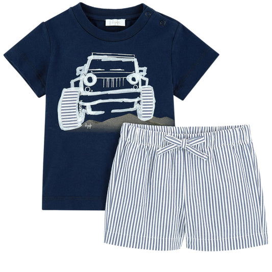 Il Gufo DP8J1 2pc Seersucker Car Short Set
