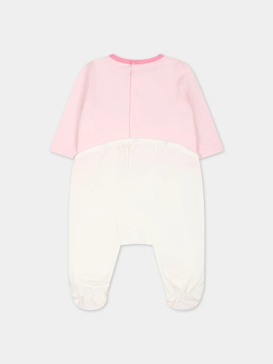 Little Marc Girls Pink LS Colorful Logo Print Footie