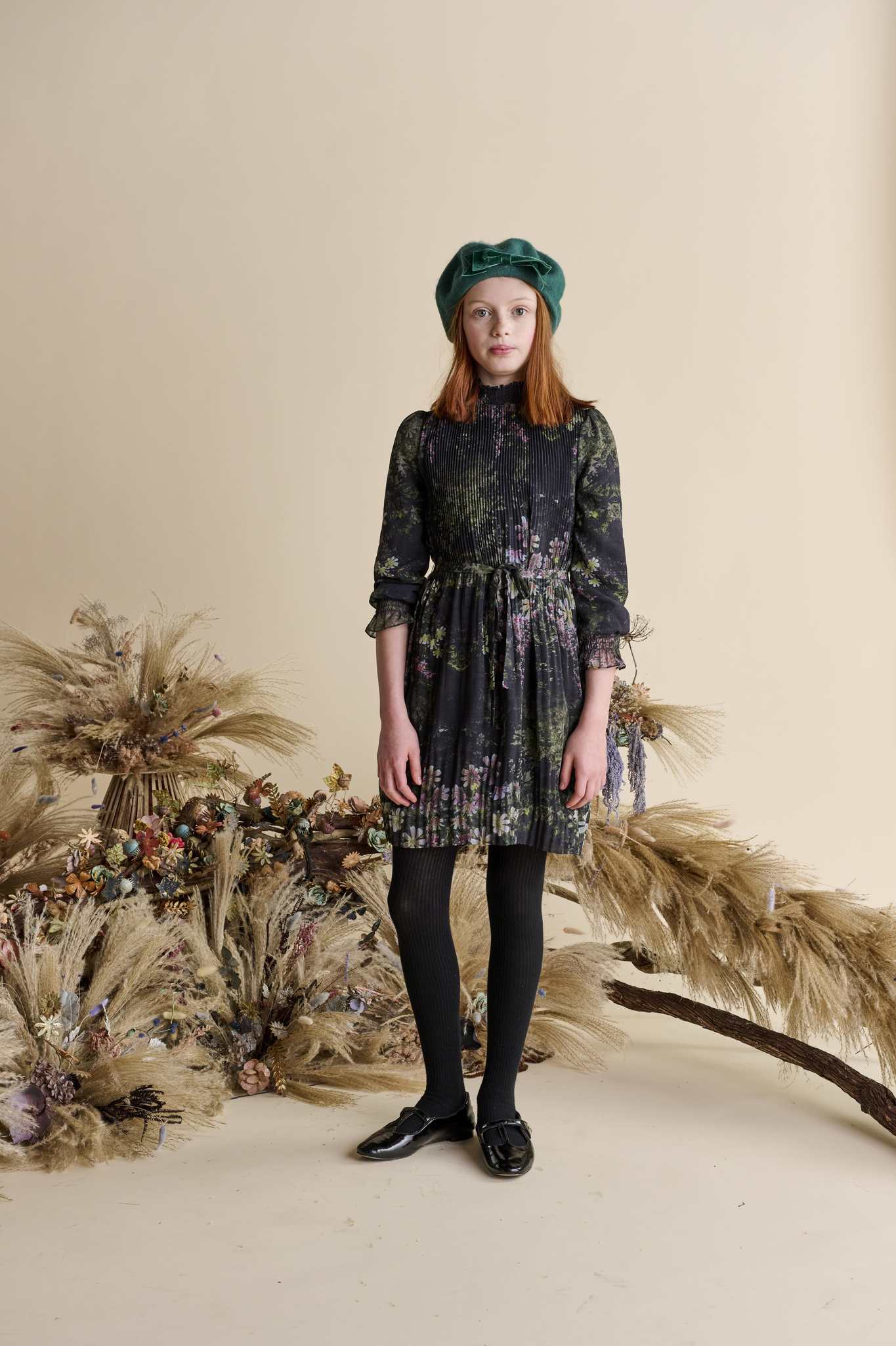 Porter LS Pleated Tie Waist Chiffon Dress 1543
