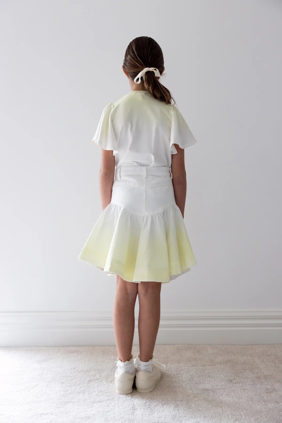 The Yellow Tie Dye Denim Skirt from our Fleur Sauvage Collection is made from cotton denim. The Skirt features a tie dye print. The fit and flare shape has side pockets and a button and fly front opening.